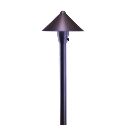 All of our fixtures are designed to the highest of industry standards and built to stand the test of time. We offer solid brass Coneheads and China Hats path lights with an antique bronze finish. We also offer a China Hat in Black - Aluminum.