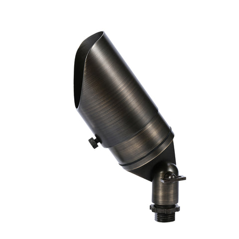 We offer solid brass and aluminum spotlights with different style glare guards to create different lighting effects. Spotlights are used to uplight a home, plant, tree, or landscape feature. These lights only help to enhance an outdoor environment by creating shadow, ambiance, shape, texture, warmth, and artistic appeal by highlighting the outdoor surroundings that already exist.